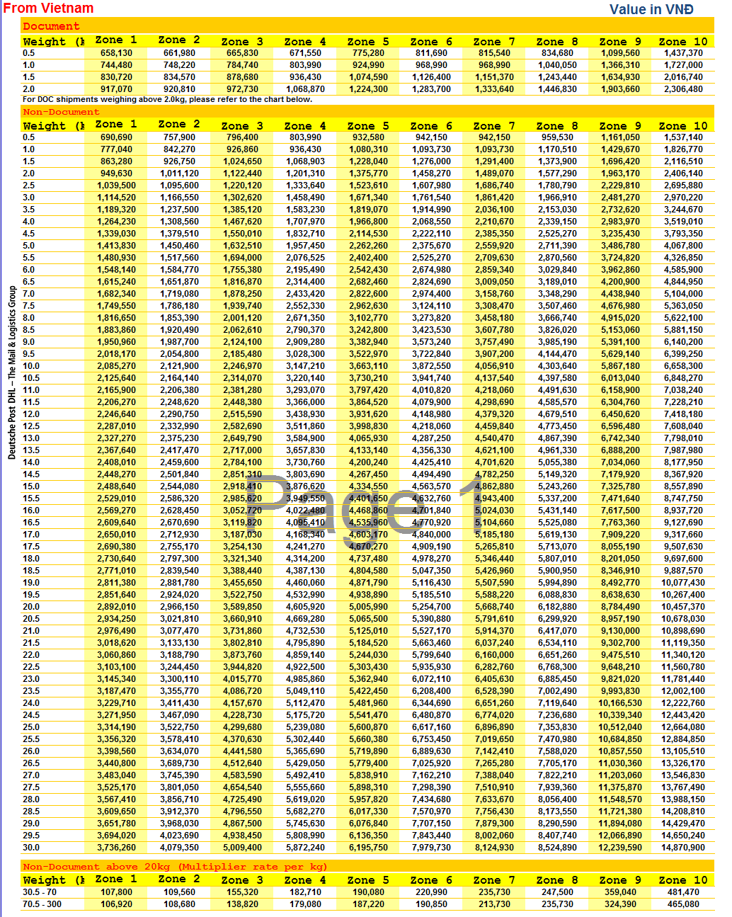 Tùy theo loại dịch vụ quý khách hàng lựa chọn và tùy theo từng thời điểm khác nhau dịch vụ DHL cũng như các dịch vụ khác sẽ thể hiện giá khác nhau theo từng thời điểm.